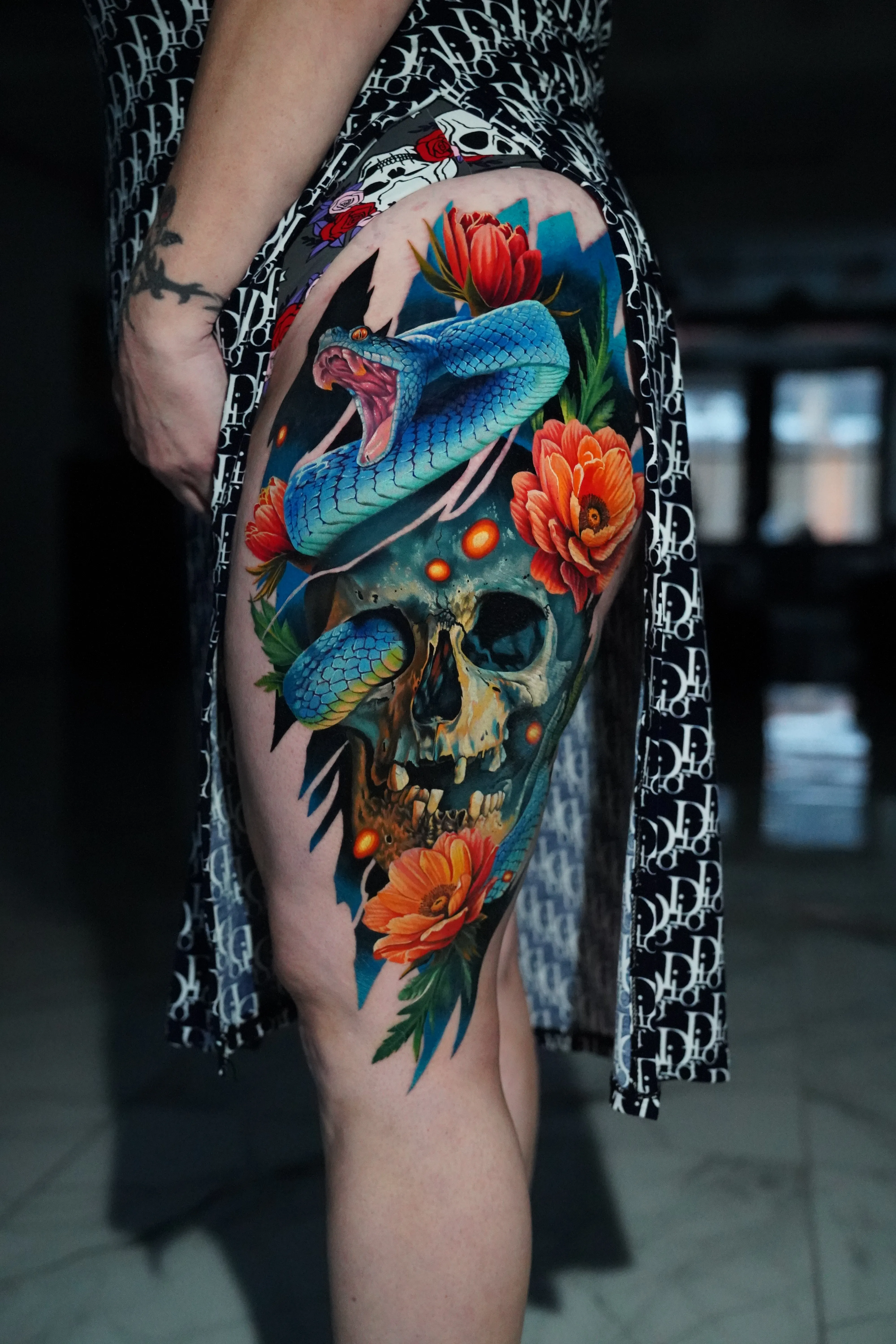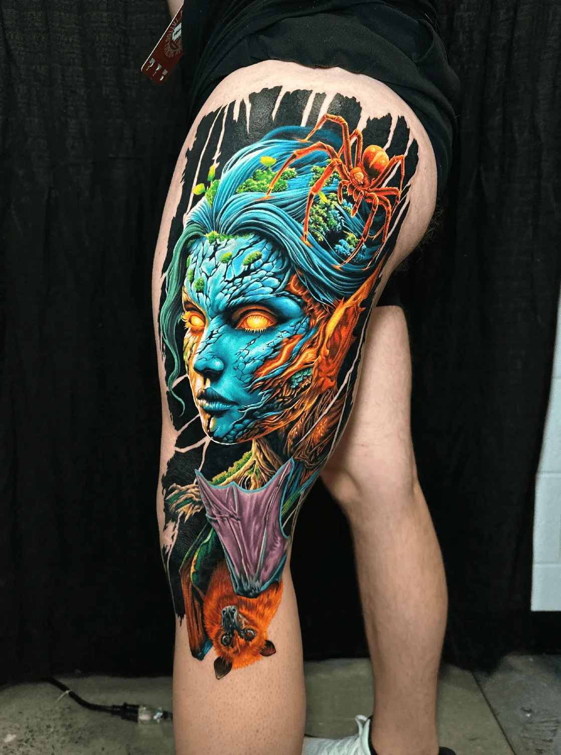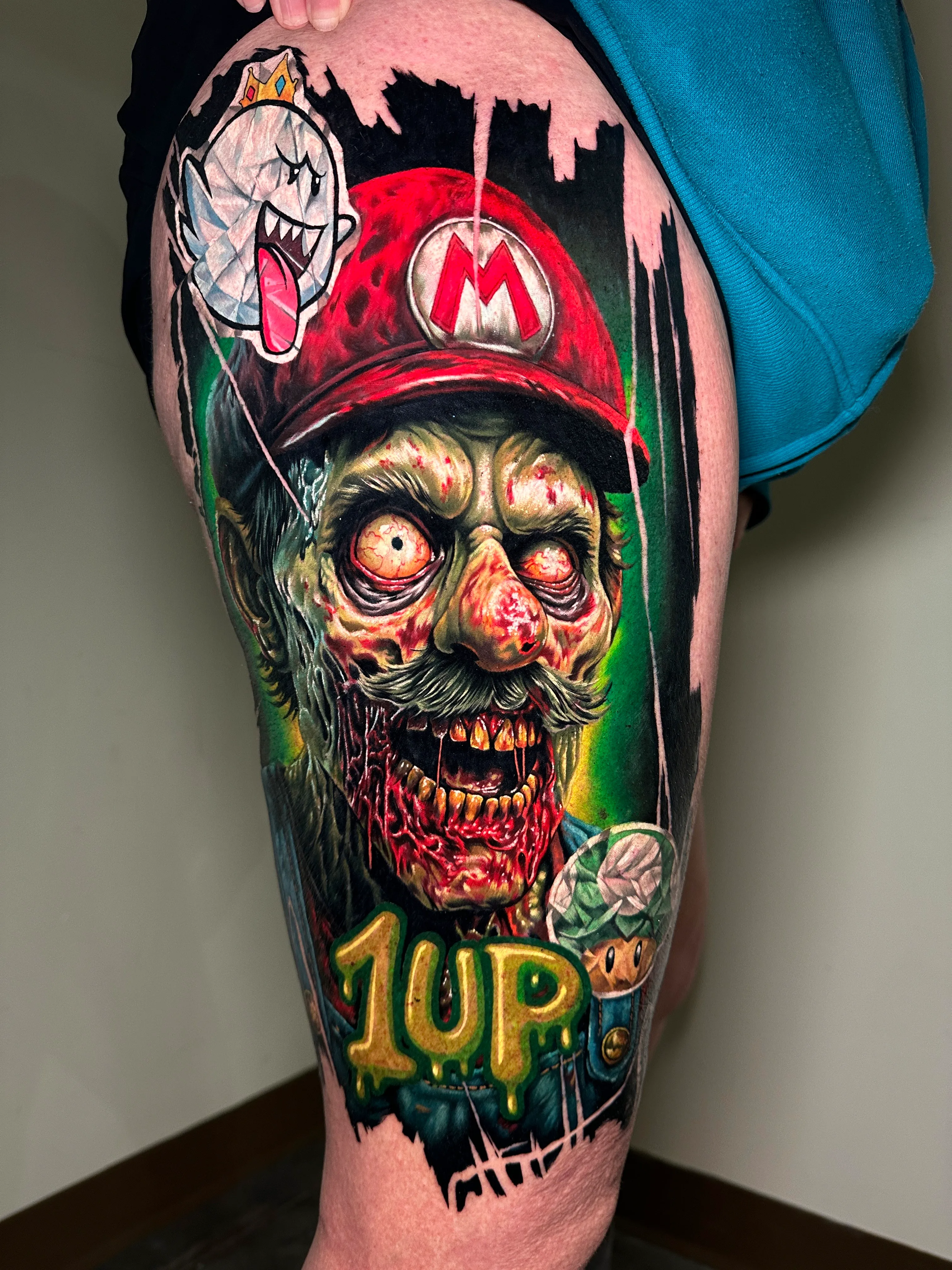 I was trained in Japanese oriental and neo-traditional tattooing, where I learned the importance of strong foundations, respect for tradition, and attention to detail. In 2017, my artistic direction shifted when I fully immersed myself in realism, a turning point that allowed me to discover my own voice as an artist. Over time, this exploration evolved into my signature Street Pop Art Tattoo style, a bold fusion of realism, street influences, and pop culture brought to life through expressive concepts and vibrant color.