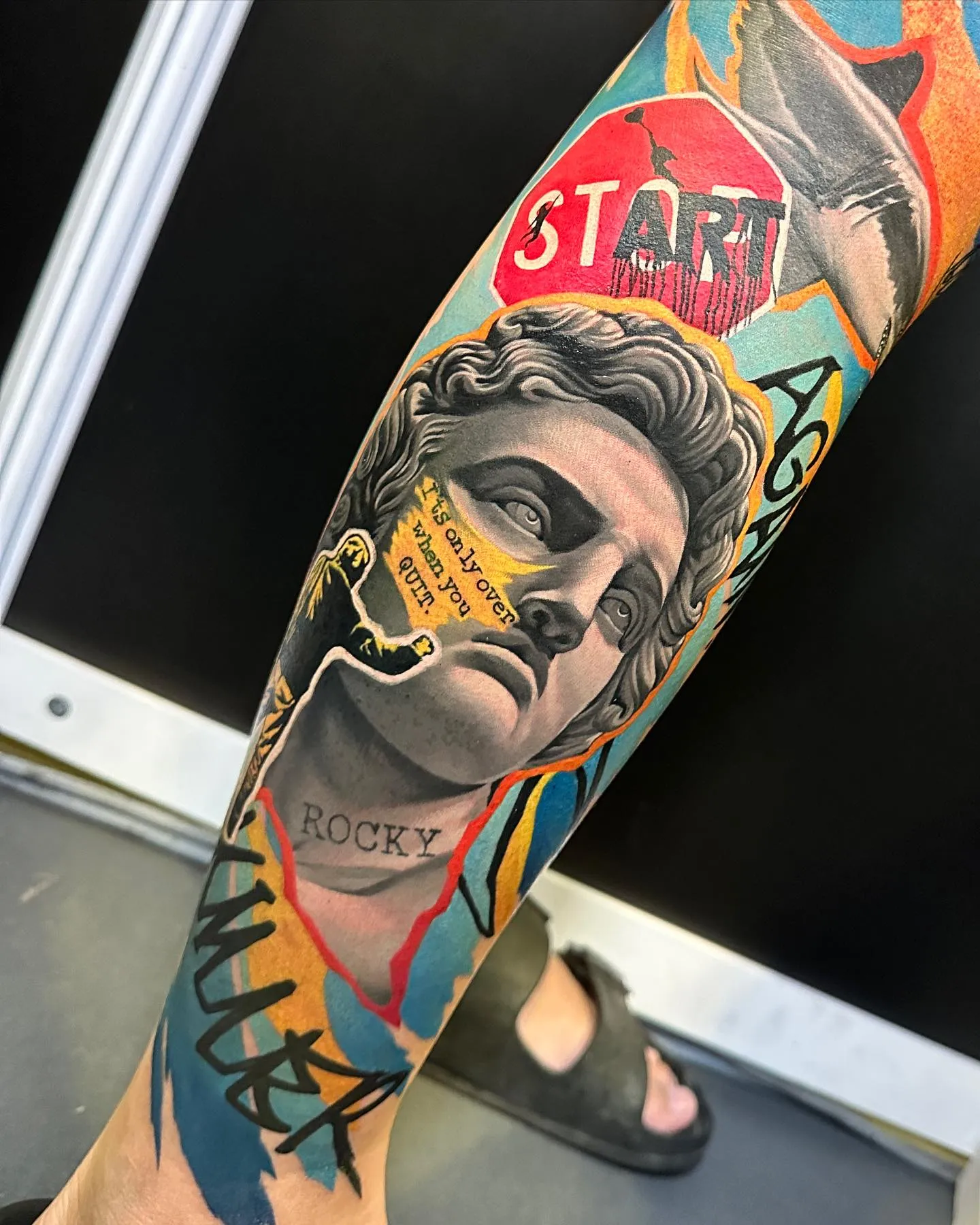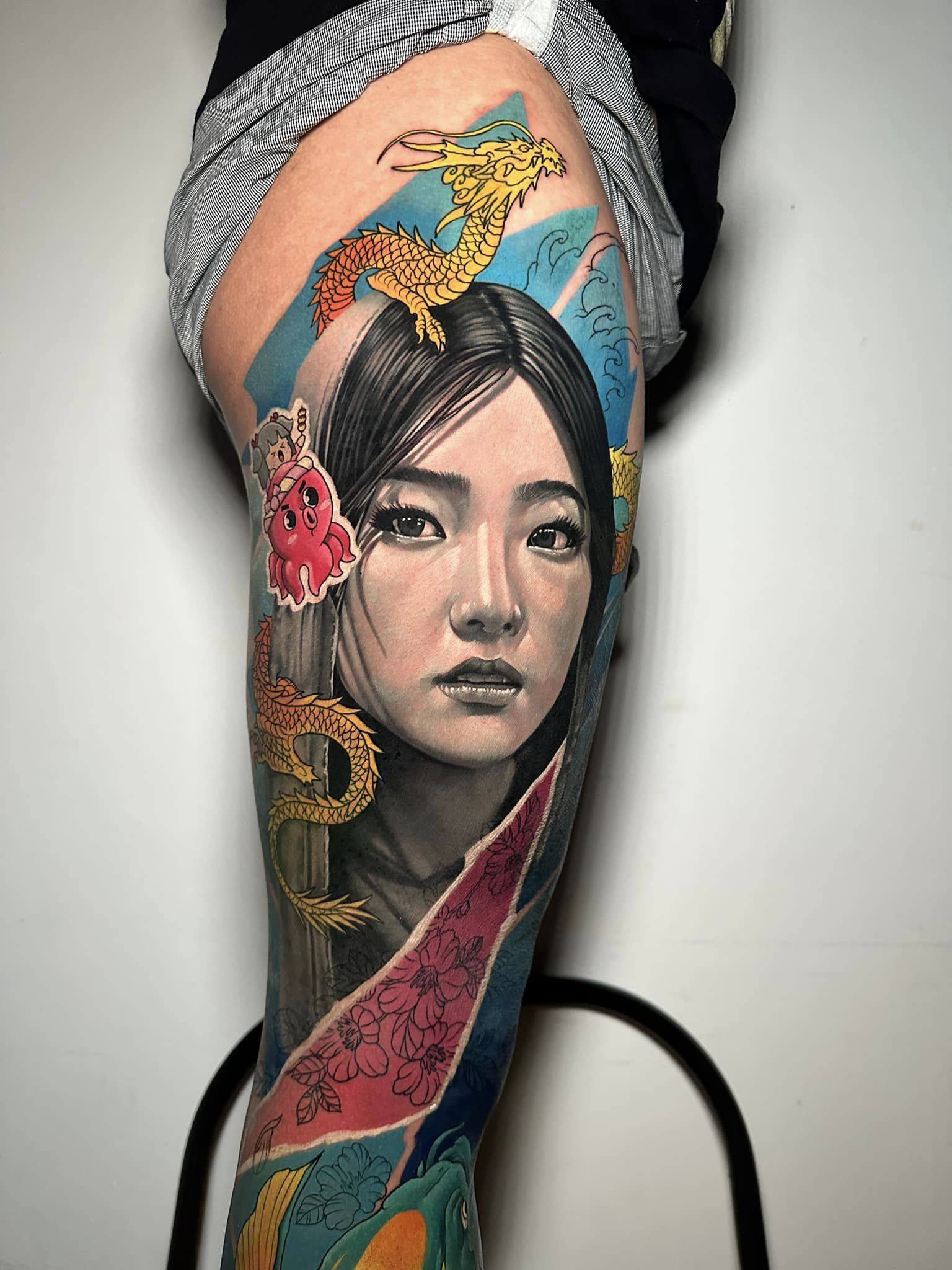 I specialize in Street Pop Art Tattooing, a signature style that blends realism, street art, and pop art using bold concepts and vibrant color palettes. I also work extensively with color and black & gray realism, as well as large-scale, multi-session pieces.
