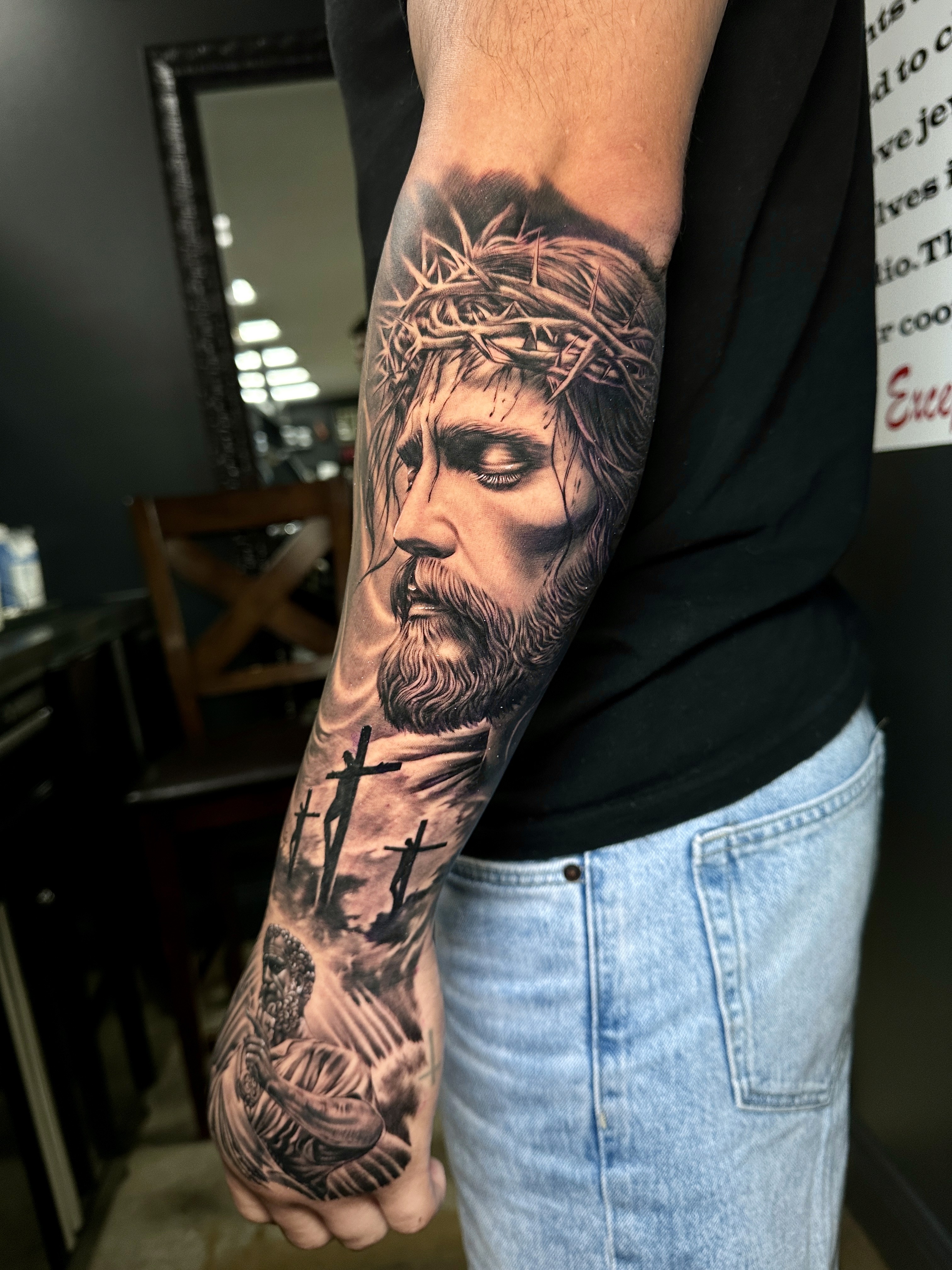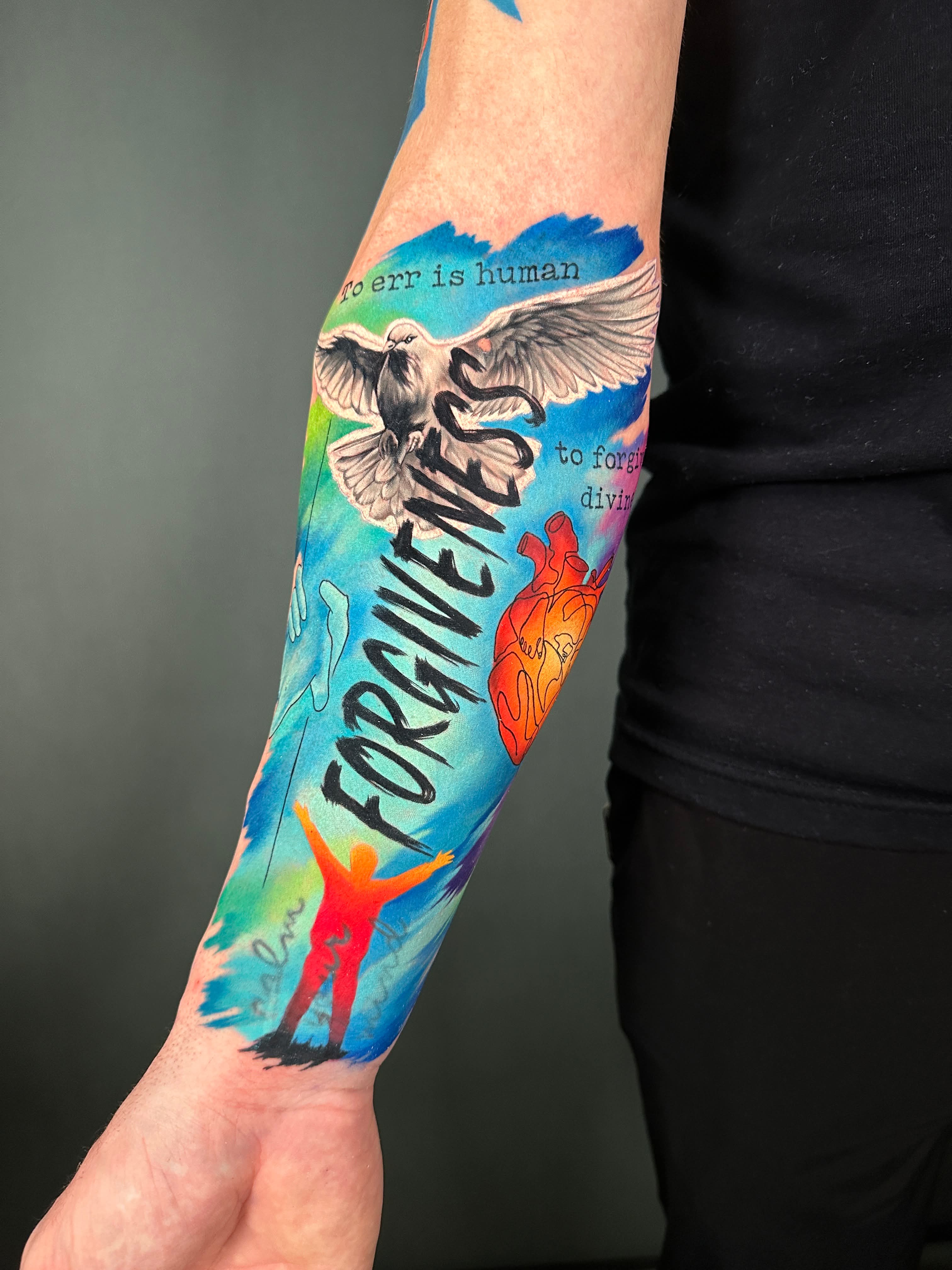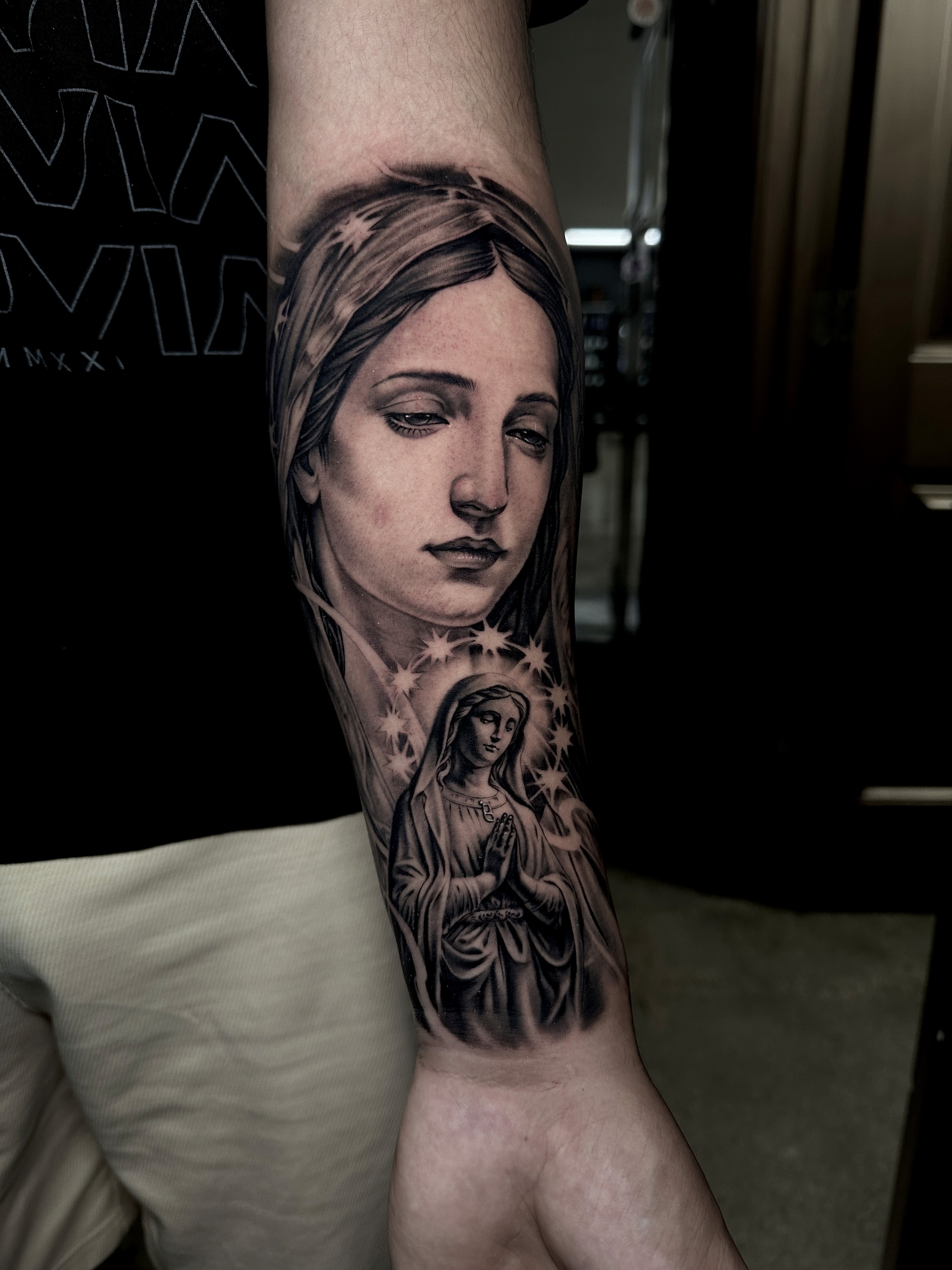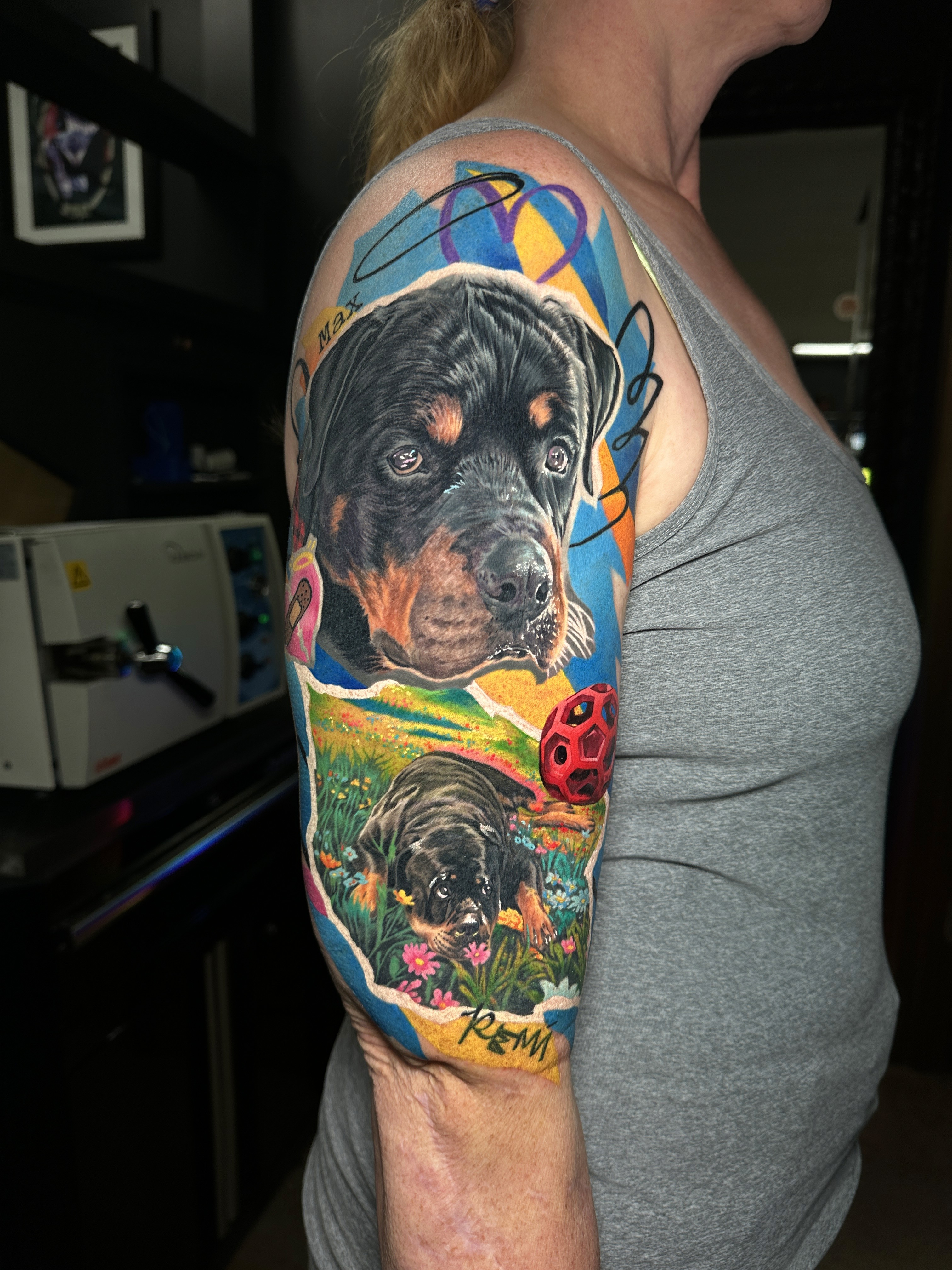 I specialize in Street Pop Art Tattooing, a signature style that blends realism, street art, and pop art using bold concepts and vibrant color palettes. I also work extensively with color and black & gray realism, as well as large-scale, multi-session pieces.